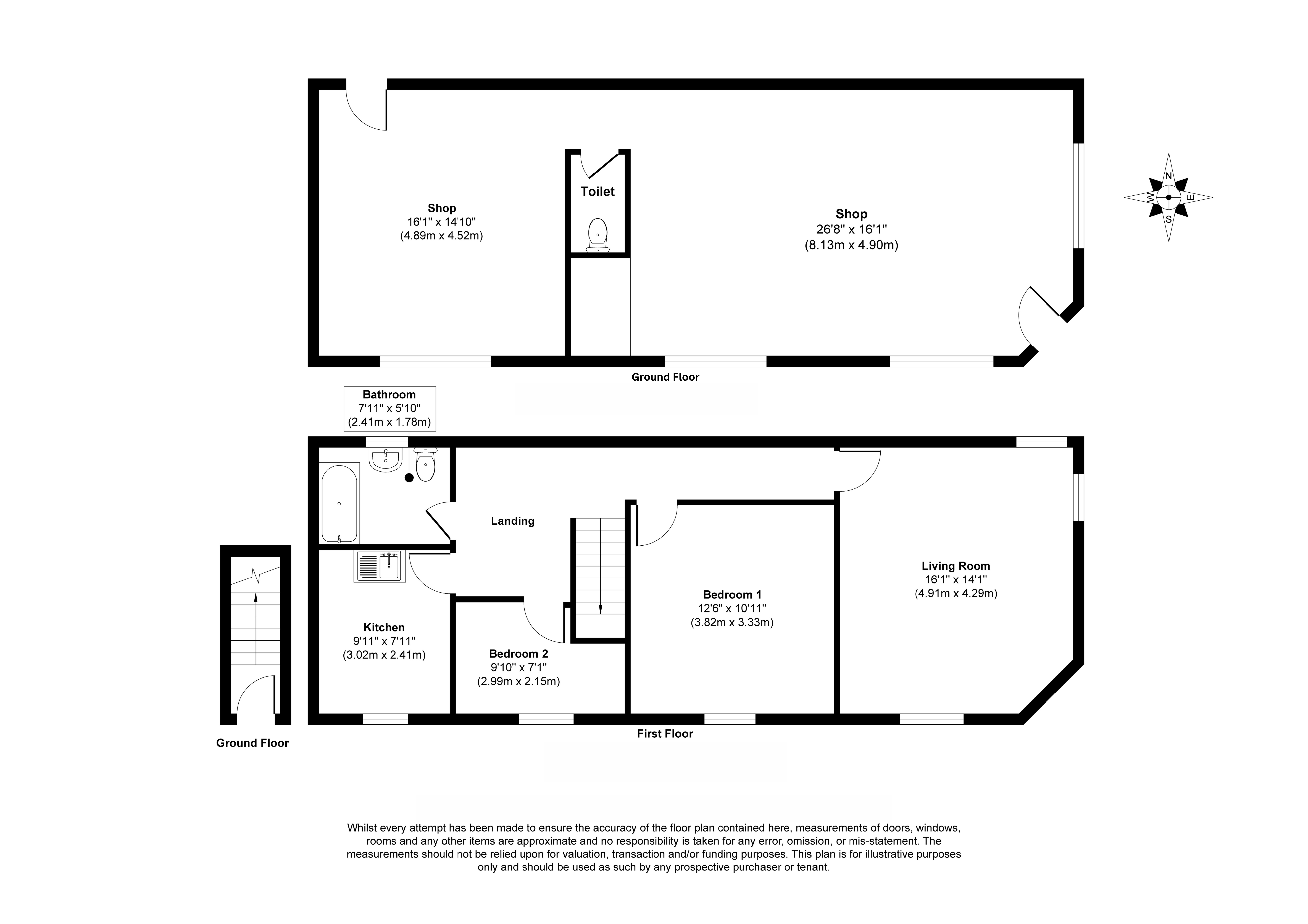 Ground-floor shop: two rooms, WC