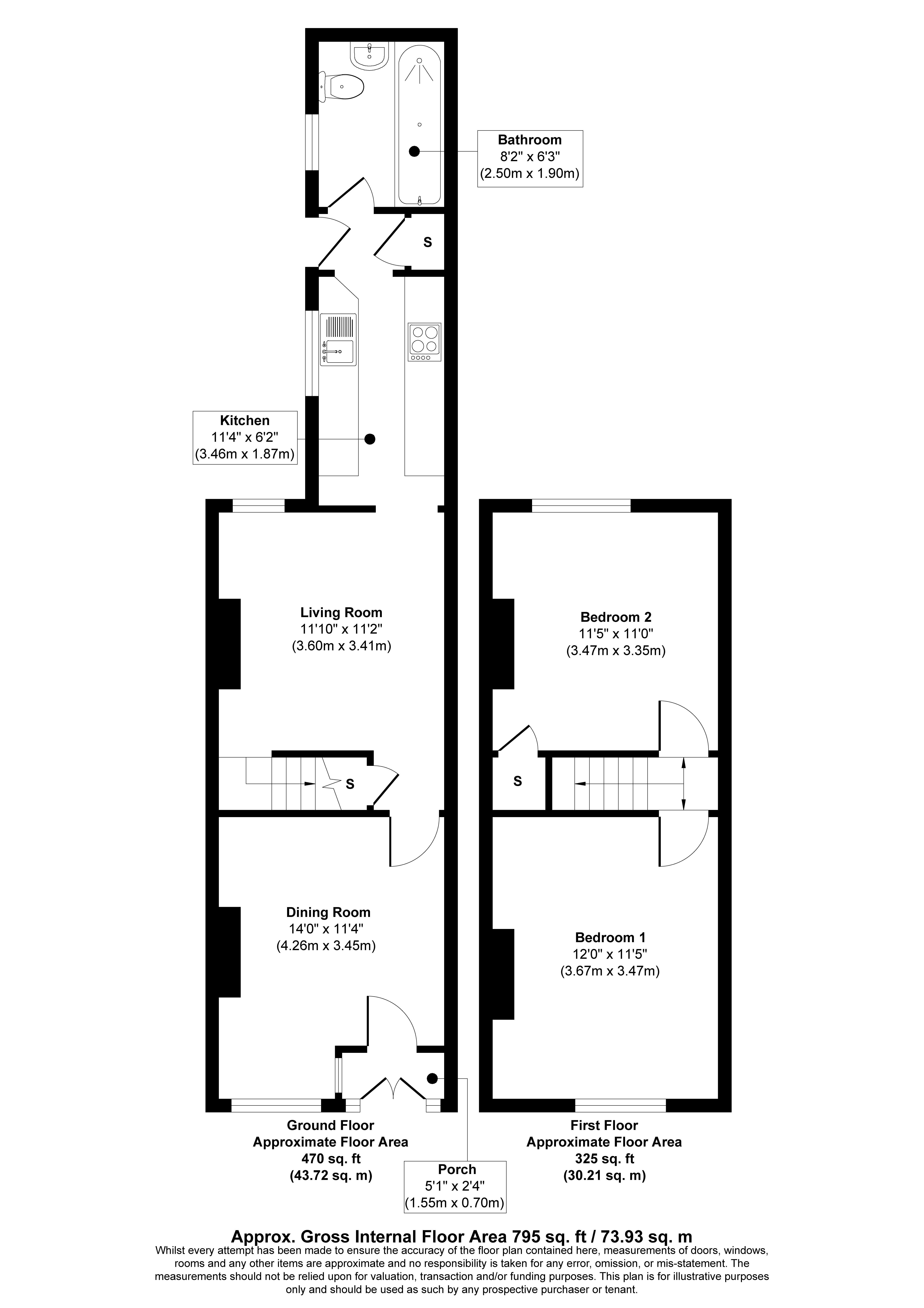 First floor: two bedrooms