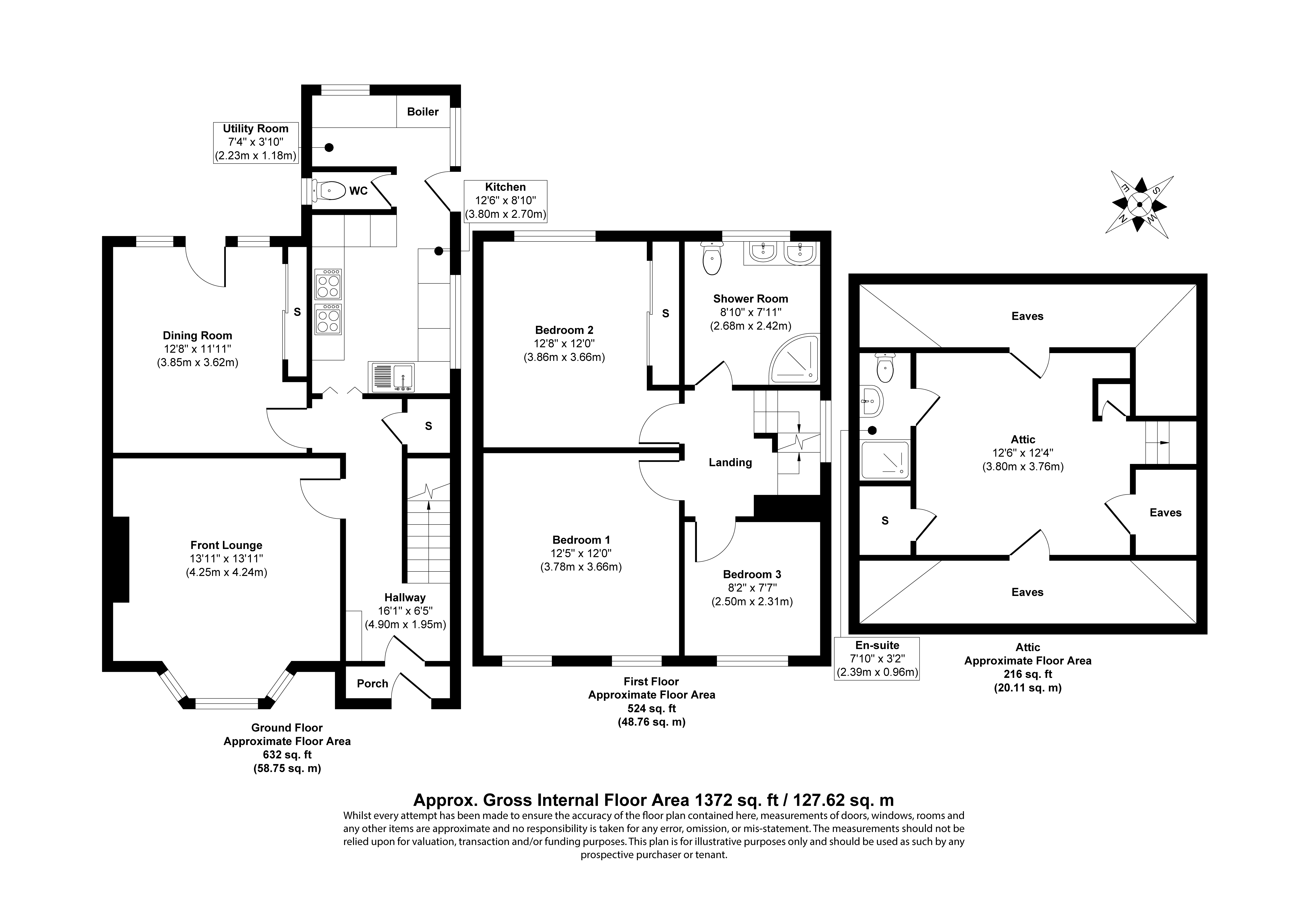 First floor: three bedrooms, shower room