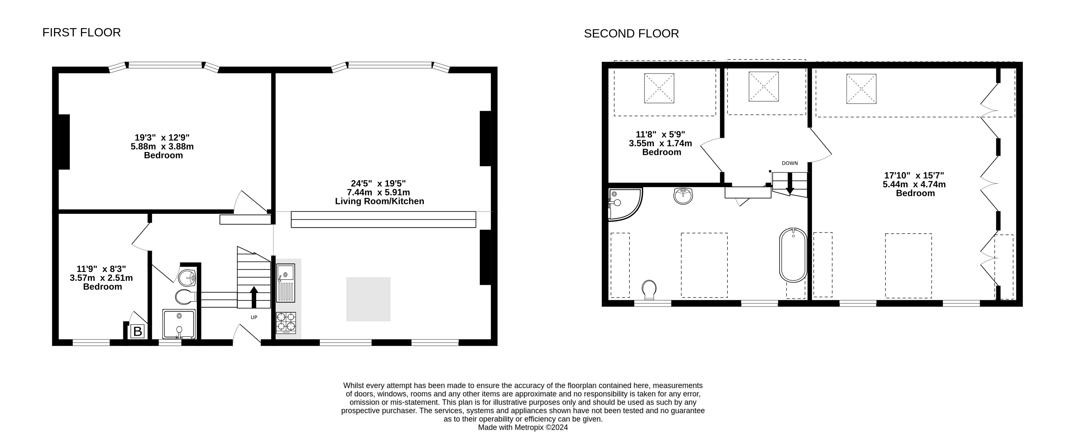 First floor: kitchen/living room, shower room, two bedrooms
