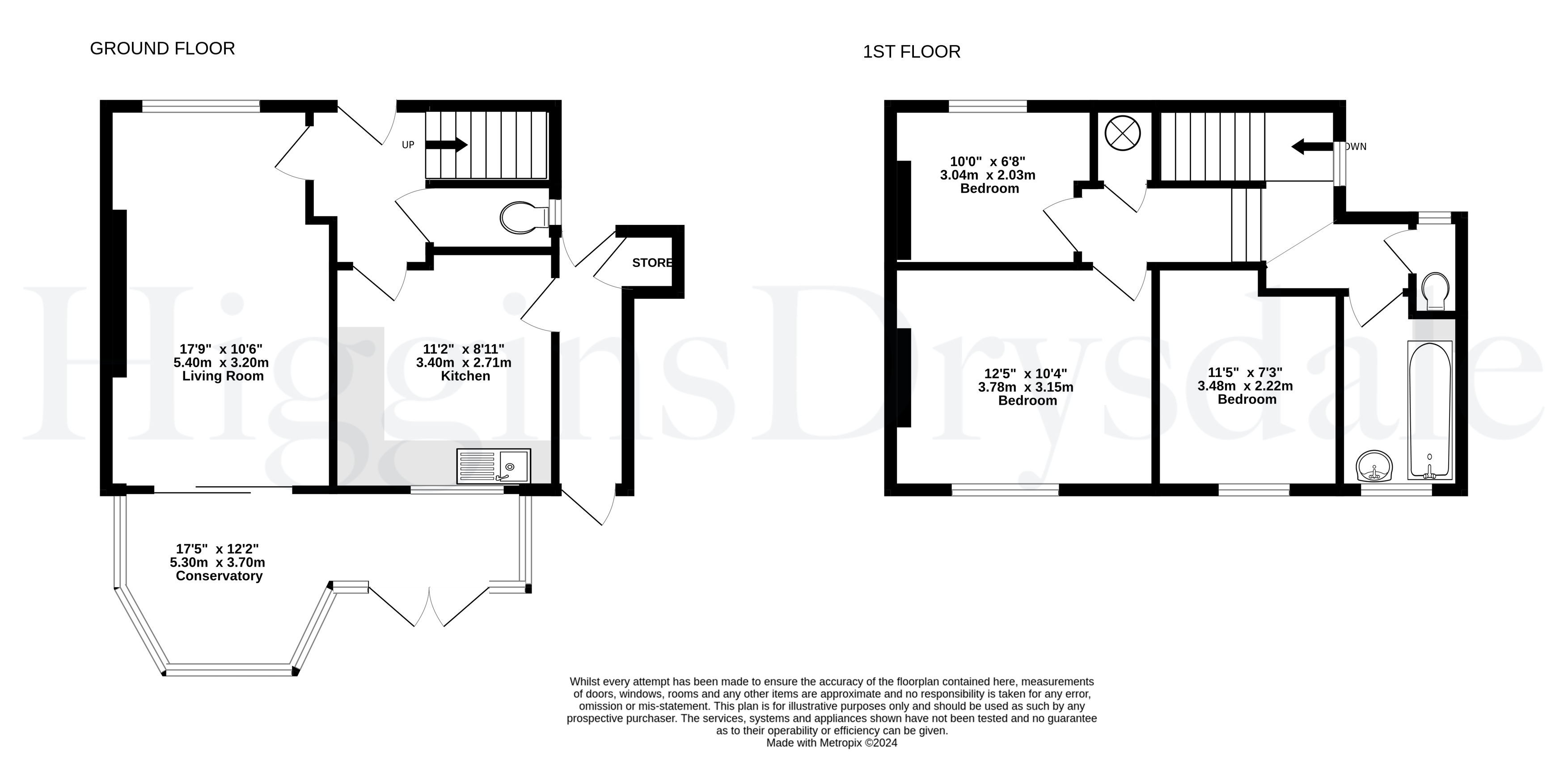 Ground floor: kitchen, WC, living room, conservatory, ginnel