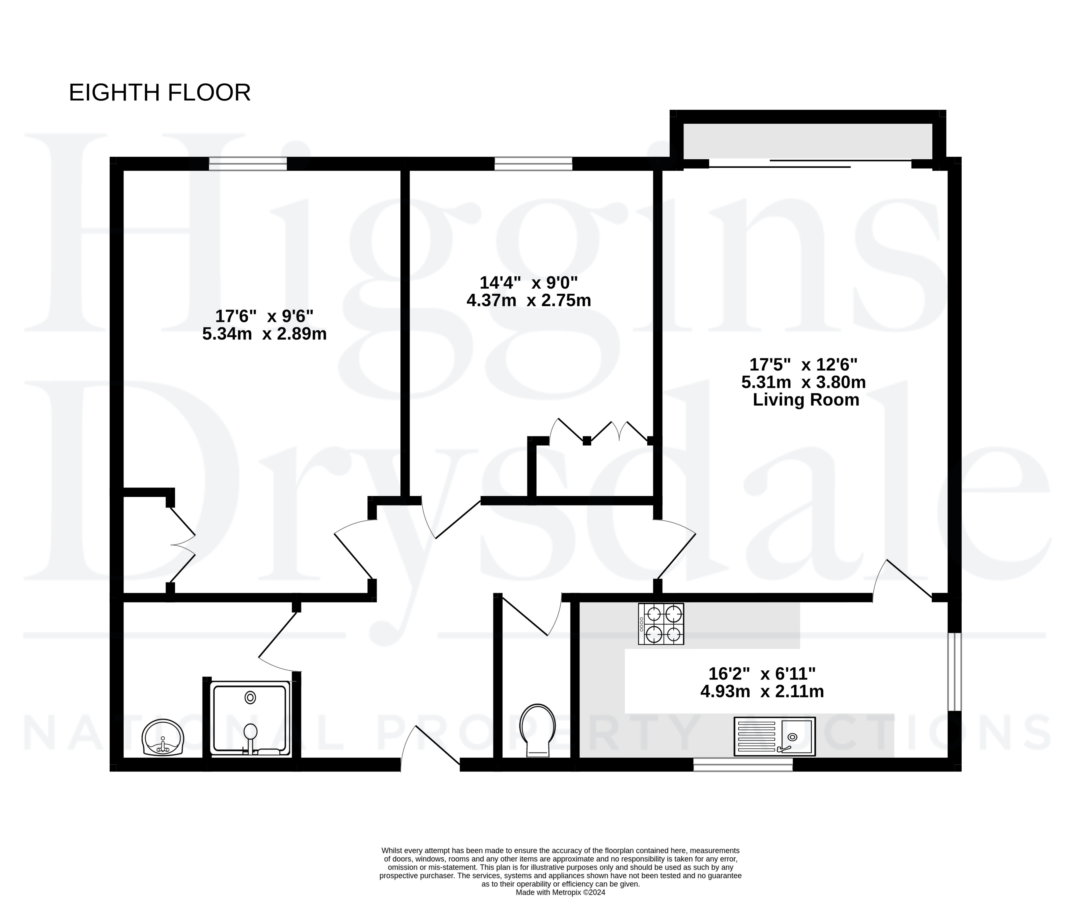 Eighth floor: two bedrooms, living room, kitchen, WC, shower room