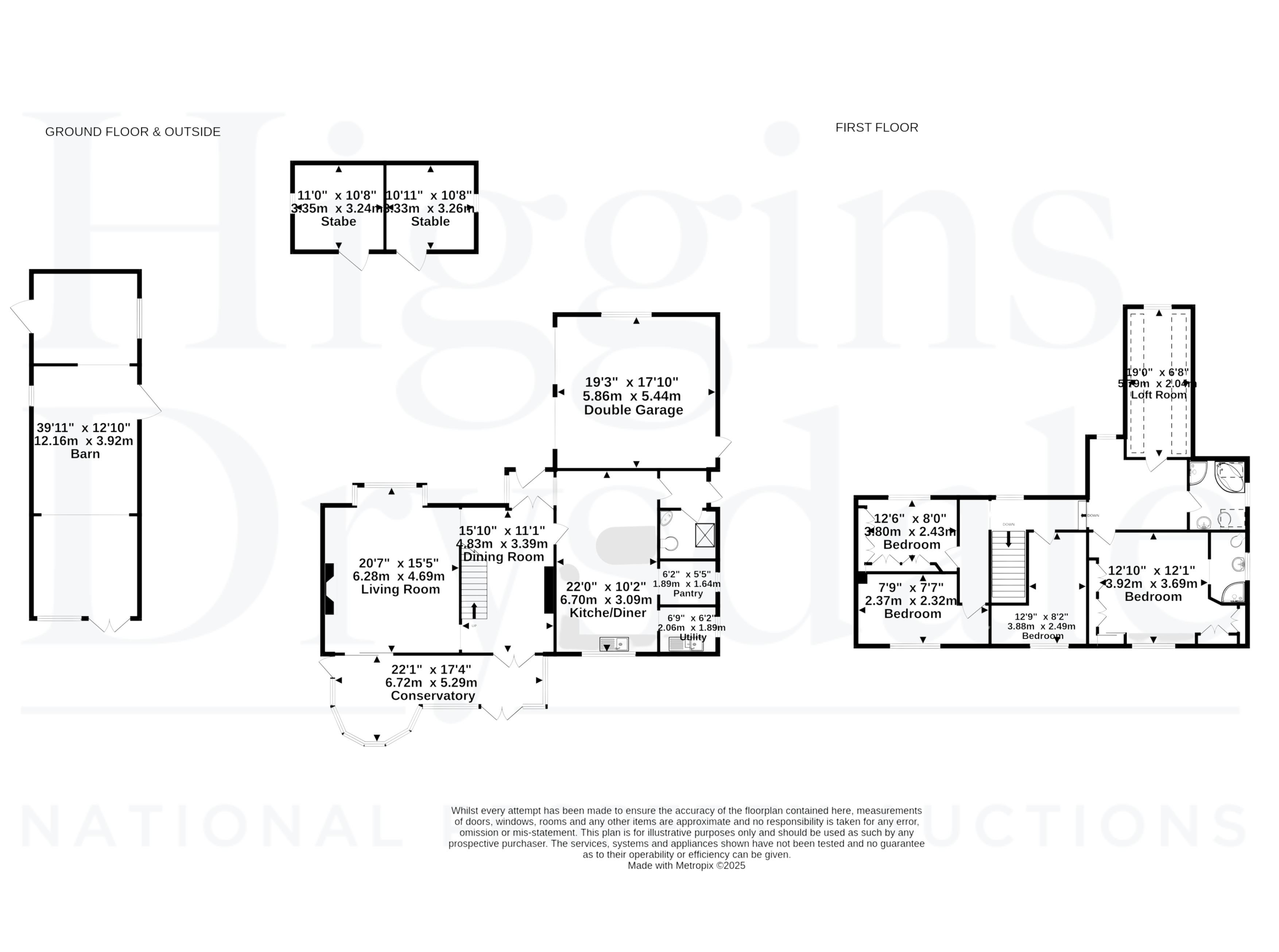Barn, stables, double garage, greenhouse, multiple sheds, oil tank, tenanted grazing land