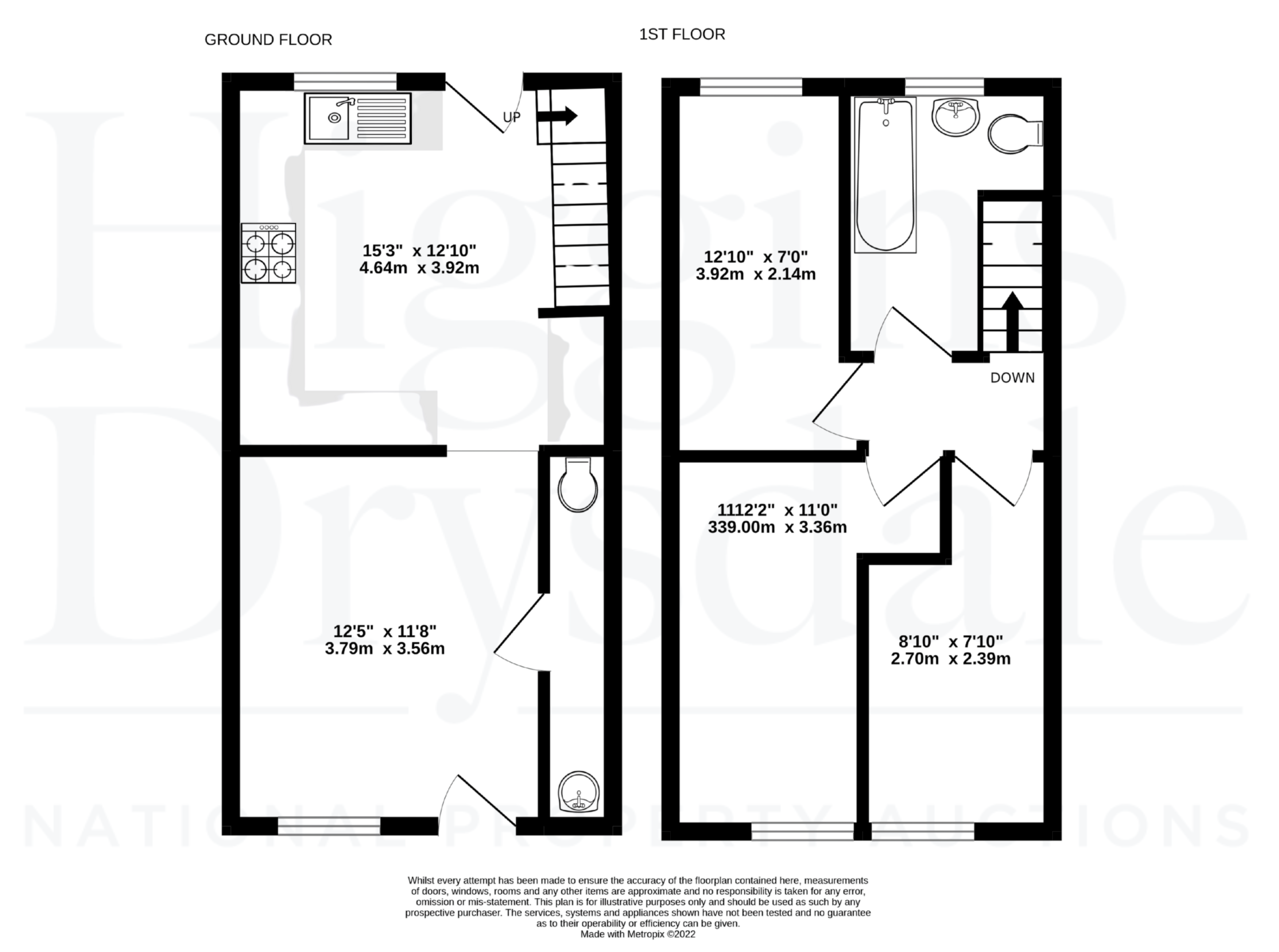 First floor: three bedrooms, bathroom