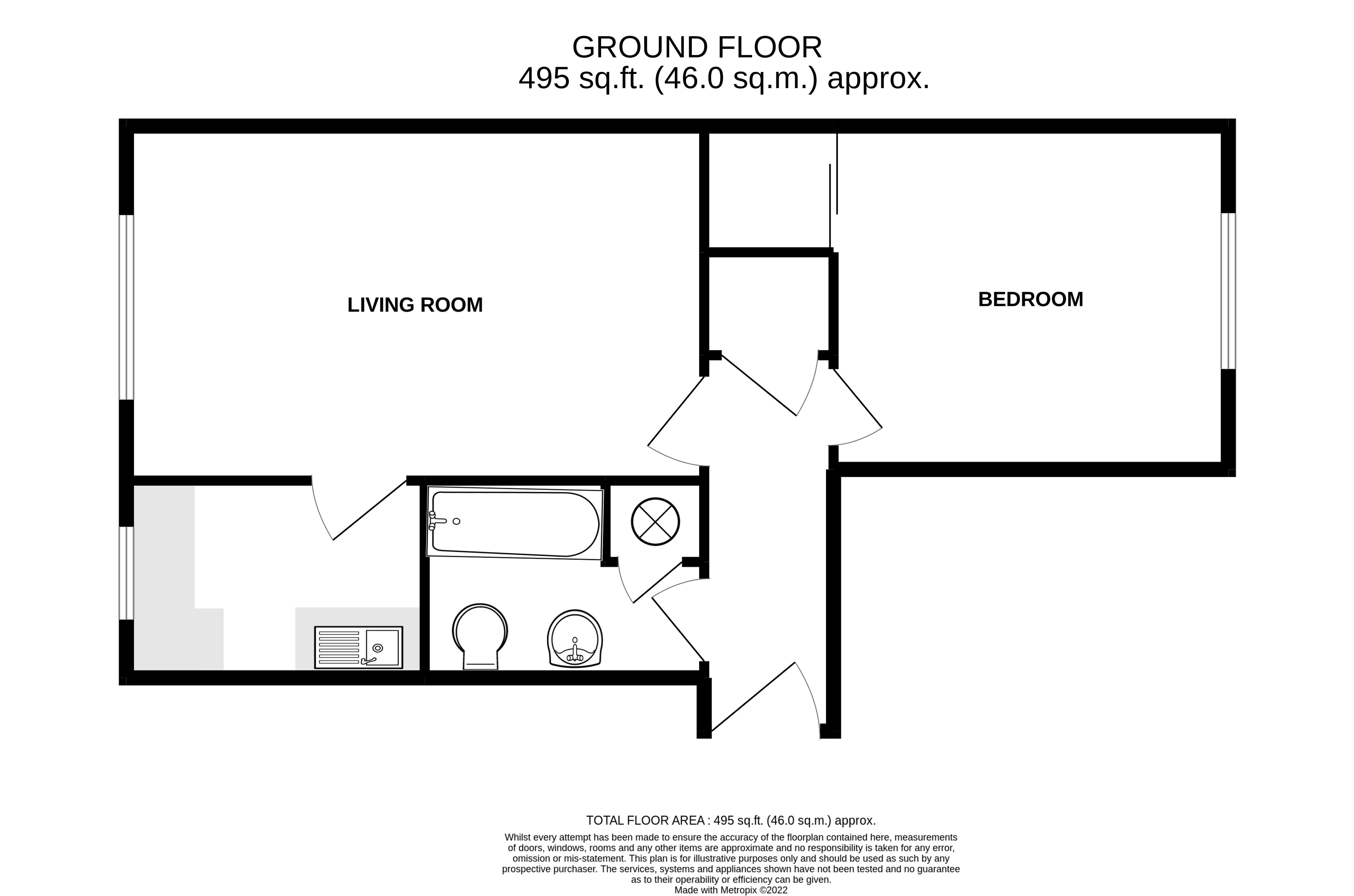* 1-bedroom * In need of modernisation * 495 sqft