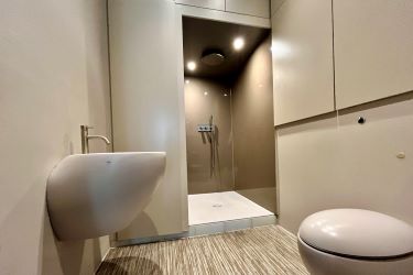 First floor: bedroom, shower room, living/dining/kitchen