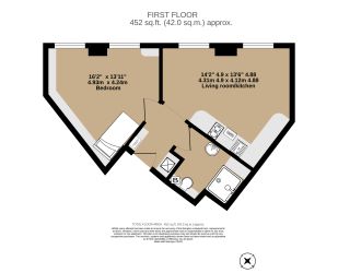 One-bedroom, first-floor flat, 451 SQFT, Leasehold 117 years remaining.