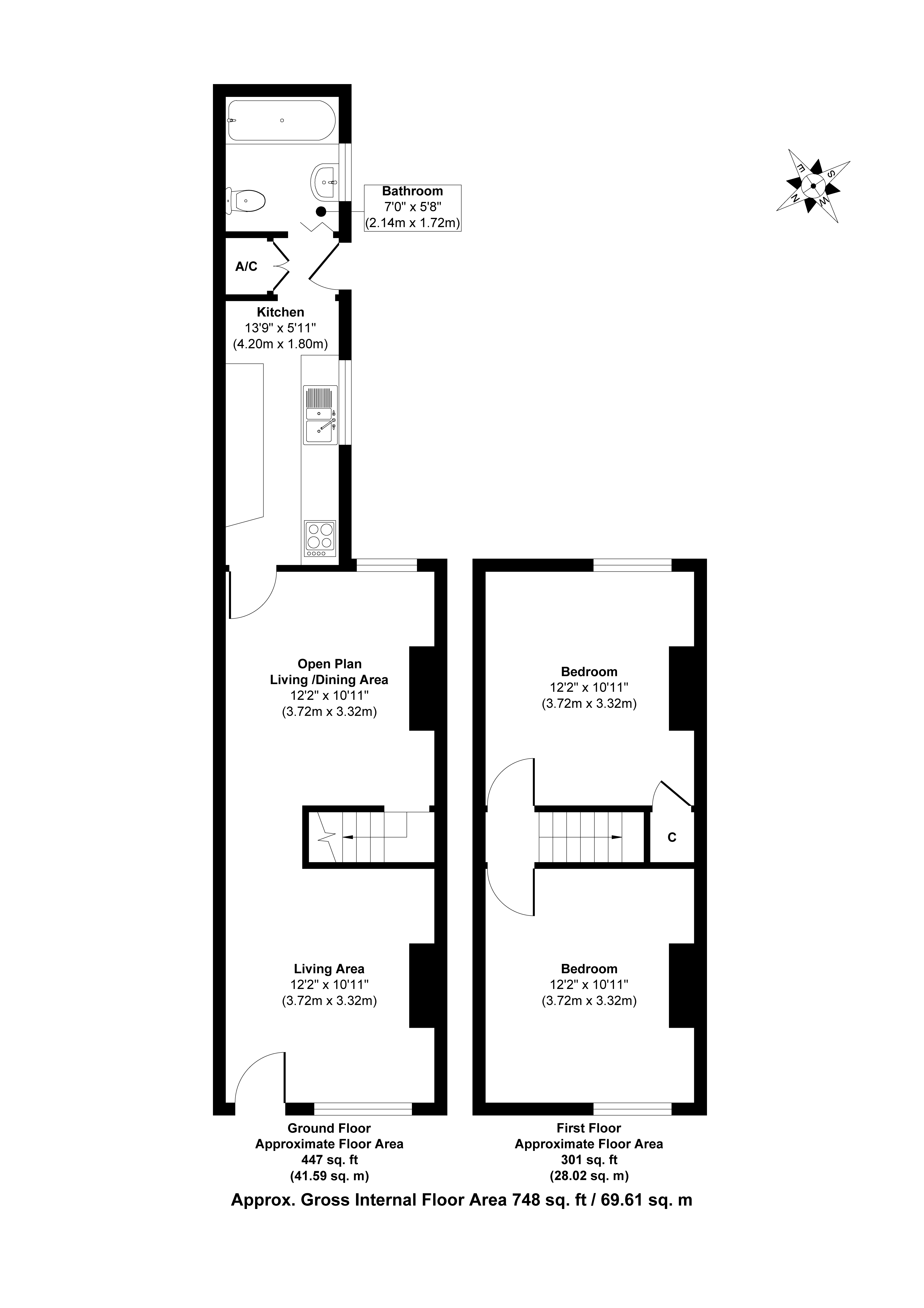 First floor: two bedrooms
