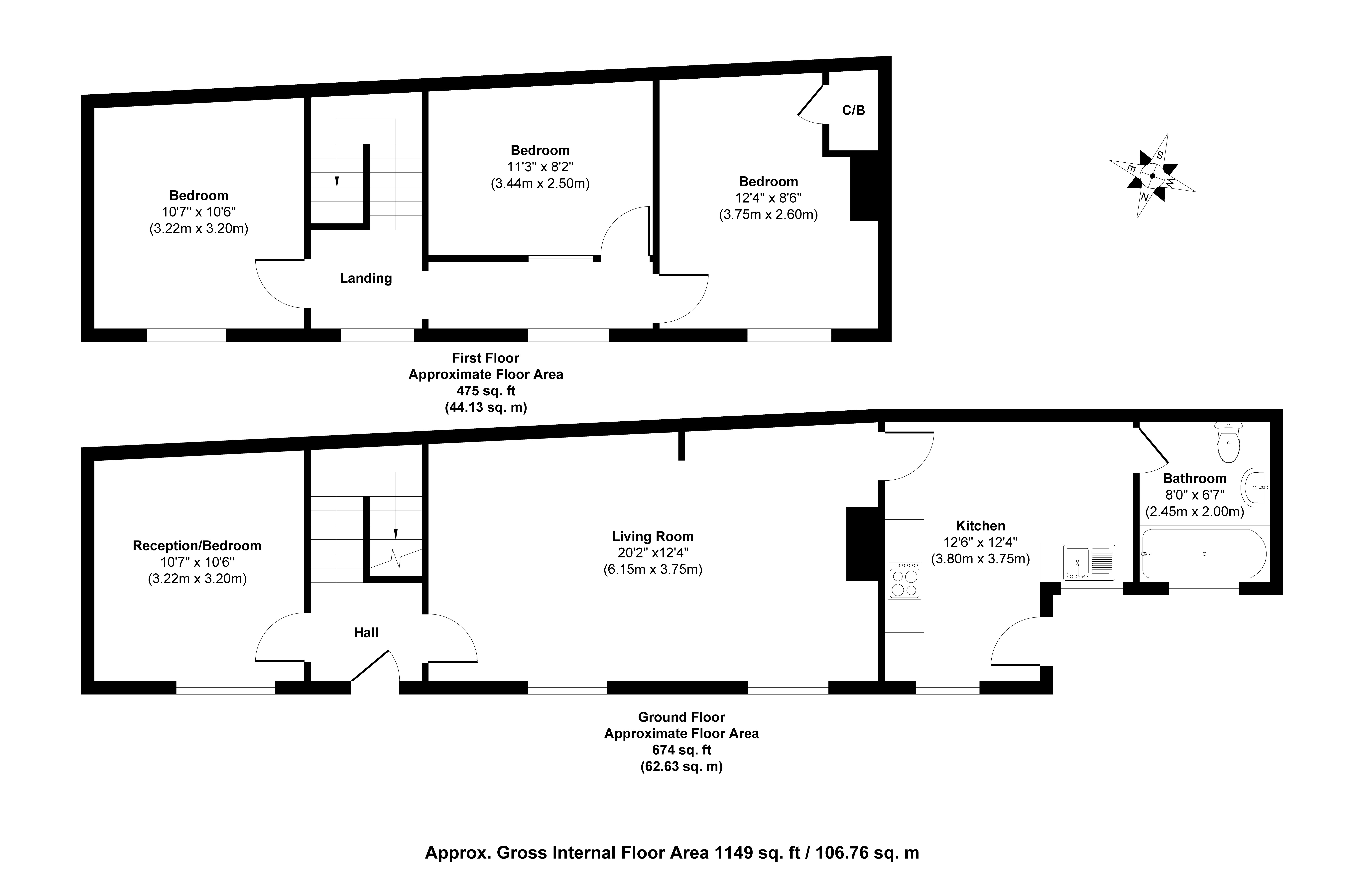 First floor: three bedrooms