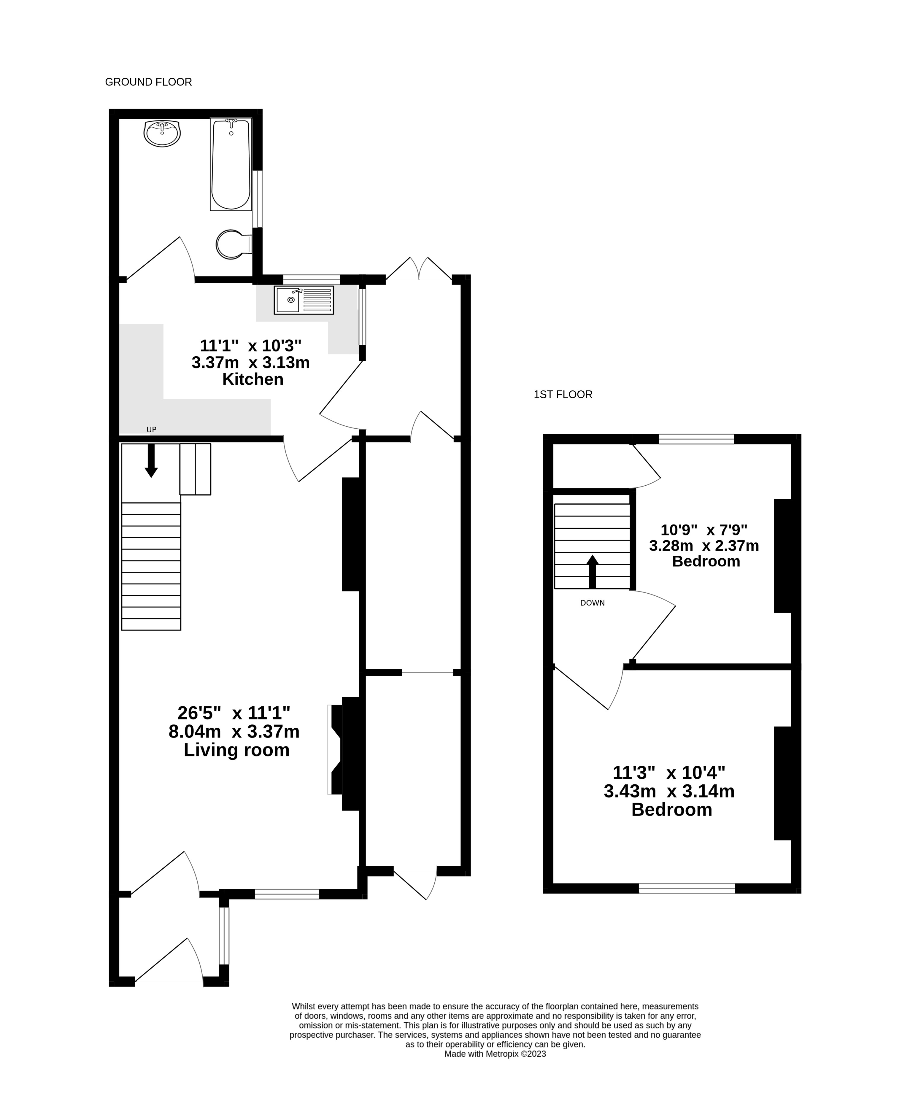 First floor: two bedrooms