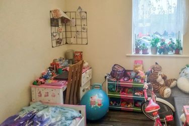 Mid-floor: two bedrooms, bathroom, living room/kitchen