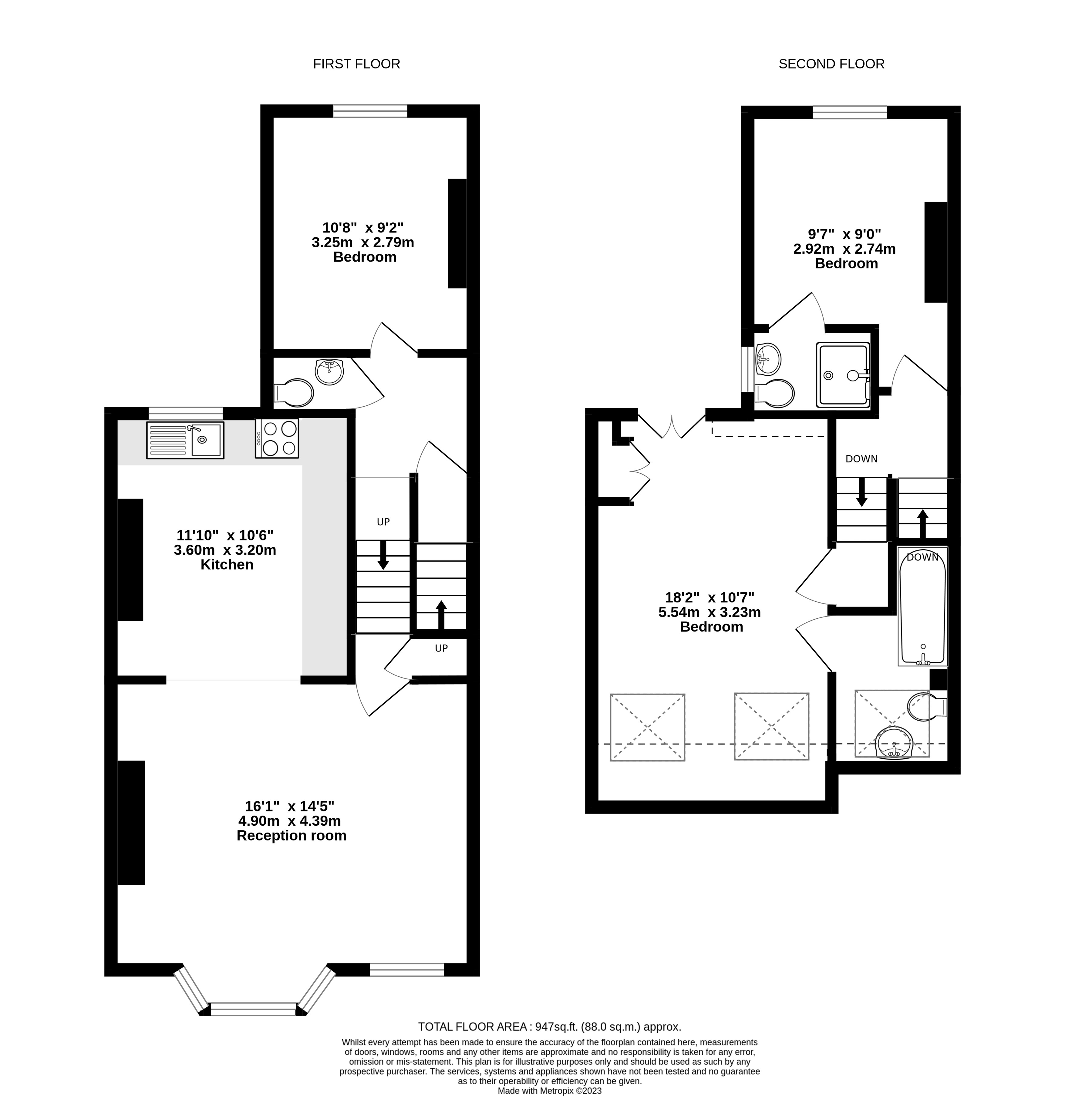 Second floor: two bedrooms, en suite bathroom, shower en suite